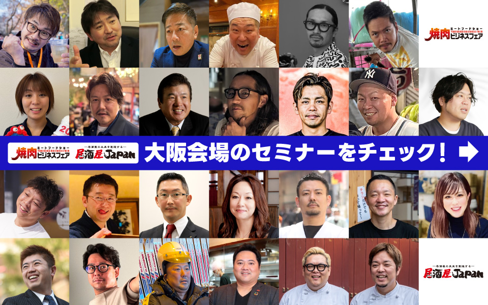 index 2023.11.212025.10.28 主催:焼肉ビジネスフェア実行委員会/居酒屋JAPAN実行委員会 合同開催!相互入場可能! 合同開催!相互入場可能! 大阪会場 来場のご案内(インテックス大阪) 大阪/出展者一覧(Coming Soon) PRプラン 出展できない企業様も使用できるプランもございます! 開催動画を見る 焼肉ビジネスフェア/居酒屋JAPAN 2025 in 東京 〜飲食店様向けビジネスショー〜 焼肉ビジネスフェア/居酒屋JAPAN 2024 in 大阪 〜飲食店様向けビジネスショー〜 新着情報 焼肉ビジネスフェア・居酒屋JAPAN2025 大阪会場 開会式ご登壇者決定いたしました! 2025.10.16 焼肉ビジネスフェア&居酒屋JAPAN2025 大阪会場 セミナー登壇者決定しました! 2025.10.16 2025年11月大阪会場開催 事前来場登録開始いたしました! 2025.10.14 焼肉ビジネスフェア・居酒屋JAPAN2025 東京会場 来場者数速報 2025.01.23 焼肉ビジネスフェア・居酒屋JAPAN2025 東京会場 来場者数速報1日目 2025.01.22 SNS リンクについて 焼肉ビジネスフェア関連サイト 居酒屋JAPAN関連サイト 外食ソリューションEXPO 関連サイト その他の関連サイト一覧